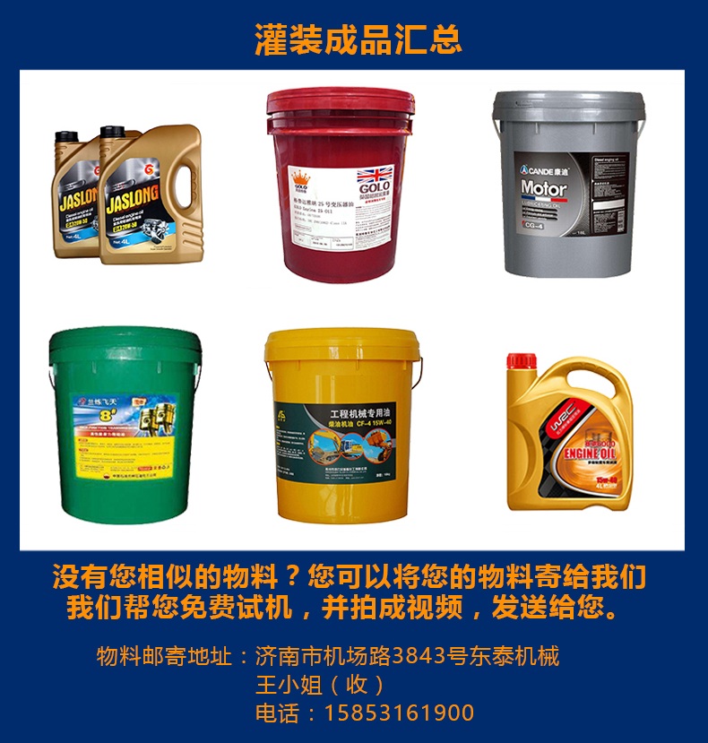 本機是根據潤滑油的特性而設計的一款全自動稱重式潤滑油灌裝機,該機設計緊湊合理,外形簡潔美觀大氣,灌裝量調節方便,精度高