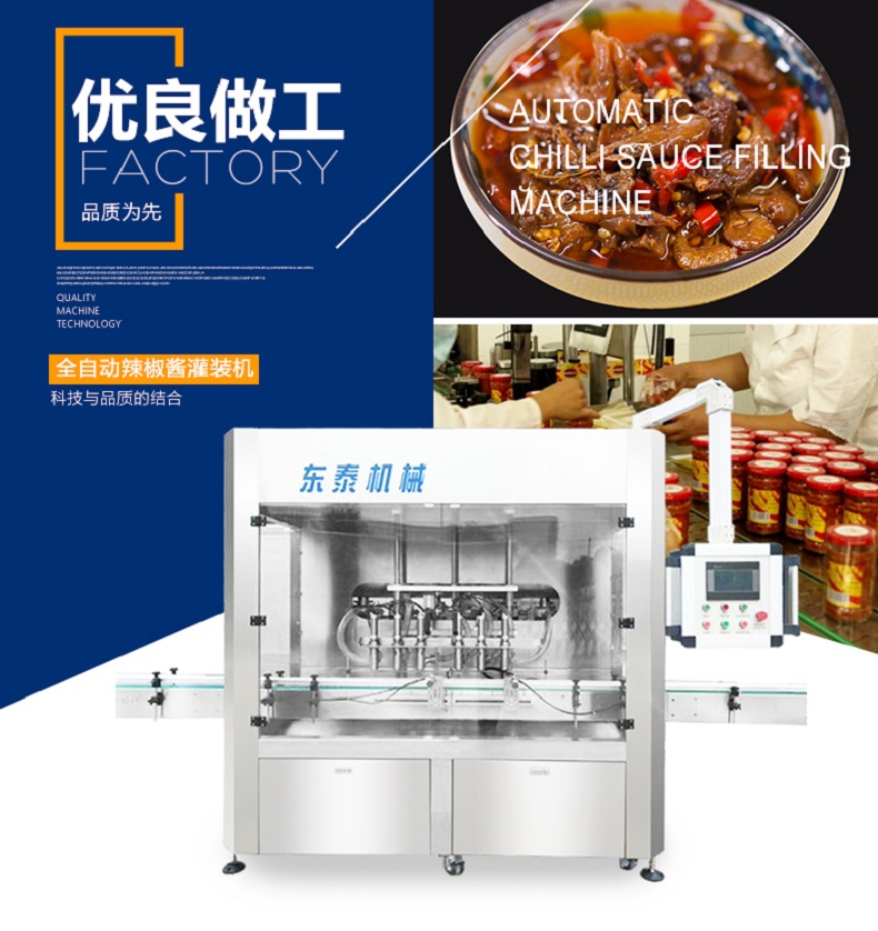 辣椒醬起源于印度尼西亞 選用新鮮辣椒和配料所調制可用做烹調菜、配蝦和其他海鮮或蘸食物,中國關于辣椒的記載是明代高濂撰《遵生八箋》,在明朝末年傳入中國。隨著辣椒醬的傳入,再加上1984年,老干媽的推出,現如今辣椒醬可是人們餐桌上離不開的一道美食了,辣椒醬好吃又美味,但是辣椒醬是如何灌裝的呢?這就要用到我們推出的辣椒醬福利!辣椒醬灌裝機了。